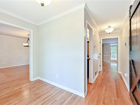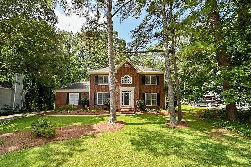 Lovely, move-in ready home is a must-see! Large, renovated kitchen boasting custom cabinetry, a large island, granite countertops and stainless steel appliances moves seamlessly into family room with built-in bookshelves and drawers. Beautiful backyard overlooking wooded area great for entertaining or just hanging out! Trey ceilings in master bedroom; large, usable walk-in closets, double vanity, tile floor and jacuzzi tub in the master bathroom. Home is just minutes from 285 and downtown Atlanta. Neighborhood has a large greenspace, tennis court and olympic size swimming pool.