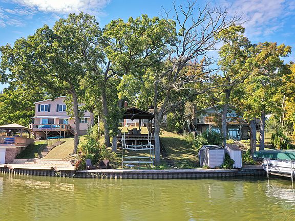 Beautiful Views from this Lakefront property! This home is situated in a perfect location just 1 lot away from the Wonder Woods Beach. The outdoor space is amazing! It features a gorgeous 2 tier Gazebo with plenty of entertaining space. Along the lakefront you will find a newer steel seawall and deck to enjoy all that the lake has to offer. The ranch home contains 2 bedrooms (probably room to add 1 additional), 1 bathroom and a 2 car attached garage. The wood cabin feel of this home boasts beamed ceilings, hardwood floors and a cozy fireplace. This home is ready for your ideas with a lot of potential! Enjoy the lake life on this beautiful 830 acre lake with a ton of things to do including boating, skiing, fishing, sailing and swimming. The area is full of activities including a nationally known ski show! Current owner had plans to expand the home. Drawings are in additional information. The owners just put in a BRAND NEW furnace! Brand New Well pump and Bladder! **Home sold completely as-is**