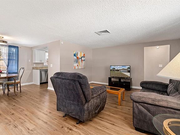Welcome home! This beautiful, move-in-ready home has been immaculately maintained and loaded with recent upgrades featuring 3 bedrooms, 2 bathrooms, and 2 car garage just minutes away from the coveted Trinity corridor and downtown New Port Richey! Neutral tones and newly updated interior paint and flooring throughout welcome you as you enter the home from the covered porch and professionally landscaped entrance. Step through the foyer into the open-concept floorplan that connects the spacious living room area to the kitchen and dining room. The kitchen area features new cabinets offering ample storage and is complete with a large basin sink with garbage disposal, all upgraded stainless steel appliances, and granite counters. The true split floorplan showcases the spacious Owner's suite featuring an onsuite bath with vanity and shower along with sliding door access to the fenced in backyard area that allows the light to stream in. On the other side of the home, you will find 2 additional bedrooms, linen closets, and full bath with shower/tub. Extras updated since 2021 include luxury vinyl plank flooring in the main areas, plush carpet in the bedrooms, full suite of upgraded SS appliances in the kitchen, upgraded counters and cabinets, new roof with gutters, new hot water heater, upgraded bathrooms, washer/dryer, fresh sod in the front lawn, updated landscaping, pavers on front porch and walkway, French drain system under the yard, and complete water softener system with reverse osmosis at the kitchen sink! The fenced in backyard is perfect for lounging, entertaining, and enjoying the Florida sunshine! No HOA and conveniently located close to shopping, beaches, airport, parks, and restaurants!