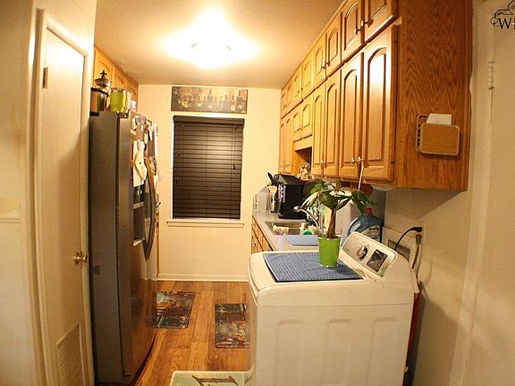 Fantastic 2 bedroom, 1 1/2 bath home in Meadowlake addition. Great curb appeal! 1 year old roof and gas line. New flooring in kitchen and full bath. Huge master bedroom, recently updated HVAC system, insulated windows, huge covered patio, and a 600 sqft shop with wood stove, new A/C wall unit and overhead door. Sharp, privacy fenced backyard. Close to Lake Wichita Park and the city trail.