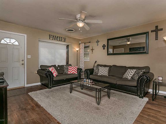 Cute 3 bed, 1.5 home located in the Southlawn South area! This home features a great size living room with hardwood floors that opens up to the kitchen and dining room combo. Kitchen has tile flooring, Formica counter tops and tons of cabinets for storage. Master has carpet and 1/2 bath! 2nd and 3rd bedroom are both good sizes, one has hardwood floors and the other has carpet. Remodel hall bath comes with granite counter tops, good storage and nice size walk in shower. Garage was converted into a BONUS den area. Large yard great for entertaining year round! Updates per seller: HVAC (2018), Roof (2012/2013), HWH (2017), No sprinklers but there is an alarm system. Set up a showing today and make this house your home!