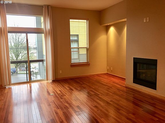 Johns Landing modern townhouse condo, (sits back from st in courtyard), w/att gar & small patio, Freshly painted T/O, & all ready to move-in! 10'ceilings, gleaming hardwood floors, granite kit, SS applcs, top floor is all master suite w/2 walkin closets, laundry, extra lg bath, sep shower & tub. 2.1 total baths, one on ea level. Views of river & Mt Hood. Great buy in convenient loc, close to cafes, shops, river, on bus line!