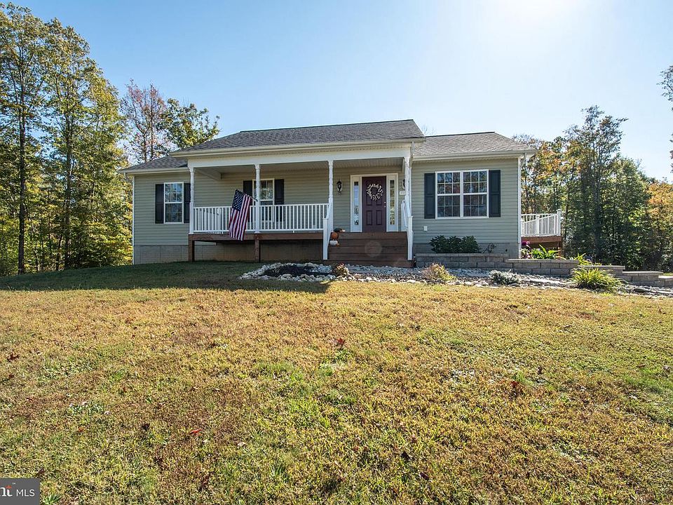 Welcome to this like new lovely Rambler/Ranch style home built in 2018 on 3 spectacular acres. Close to Culpeper- only 10 miles away, and only 33 miles to Warrenton! Serene mountain views and fresh farmland abound on this quiet paved street. This home has a wide wrap porch and deck perfect for morning coffee and family gatherings year round. 3 beautifully appointed bedrooms on main entry level along with 2 full tub shower bathrooms. Fresh open floor plan as you enter the inviting living room. Whole main level painted a fresh neutral hue along with neutral plush carpet as well as engineered hardwood in kitchen and dining area. Lots of room for living expansion in unfinished lower level- that can double your living space. Rough-in in basement as well as a full walk out. This home sparkles and glows at night time due to the extensive exterior lighting and custom hardscape- just see the night pics included. Pole Building with 60 AMP 240V electric service. P{lease schedule online and respect all CDC guidelines for showings. PPE is required when touring.