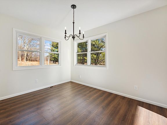 This 3 bdr, 2 bath rambler is set on a corner lot with 3.3 acres of land to enjoy. Bring your growing family because this home has a roughed in basement with a finished 3/4 bath on the lower level in addition to regressed windows all the way around to accommodate a future finished lower level. After you've finished a hard days work, relax on your brand new porch, front or back while the kids play on their wooden swing set. Enjoy working in the existing garden or take a walk through the 1+ acres of woods. This main floor remodel is equipped with all new stainless steel appliances and is lined with new windows (2022) for a wide view of the wooded landscape to the west of the property or the cleared portion of the lot to the east.