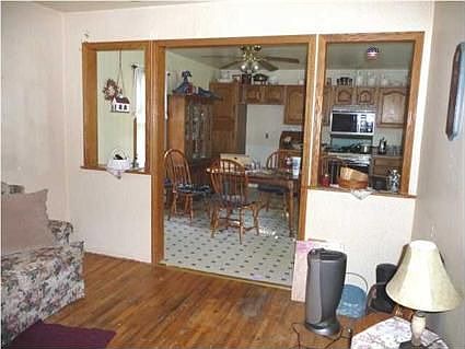 Estate Home: Better than Rent, this home has 2 Bedrooms and one bath, Kitchen was added to the home 1998, lot's of counter space and nice cabinets, Range, Microwave, Dishwasher, all included, Hardwood flooring in the bedrooms. Brick wall fireplace in the front living room. Basement is partially finished. Back porch/patio, 2 small utility sheds are also included, plus a detached 2 car garage. Property sits on a double lot. Partially fenced back yard.
