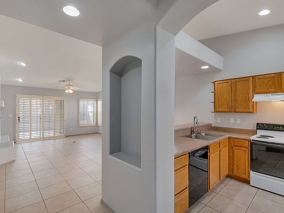 Light and bright one-story home with a 2 bedroom, 2 bathroom layout residing in the gated, Williams Centre neighborhood! The vaulted ceilings paired with the stunning flooring and open concept make this home one of a kind. The family room flows into the dining area, providing for seamless entertaining. The pantry, tall breakfast bar, breakfast nook, and clean white appliances complete this beautiful kitchen. The primary suite has a private bathroom with double sinks, a spacious shower, and a walk-in closet. The covered patio provides plenty of space for an outdoor living area and your BBQ. You'll be close to shopping, dining, entertainment, and schools yet have the peace and quiet you crave while at home.
