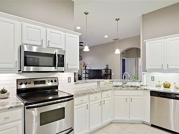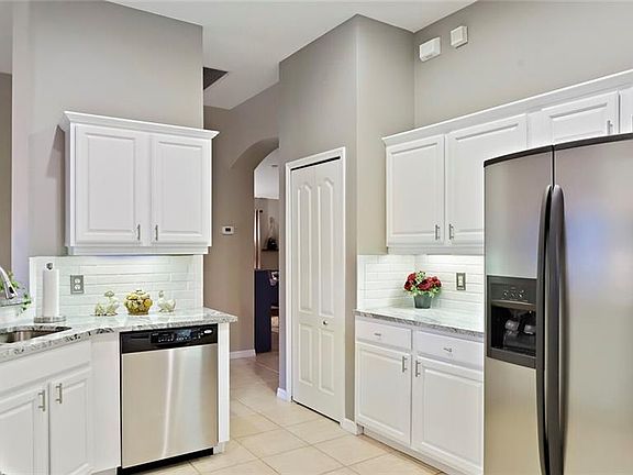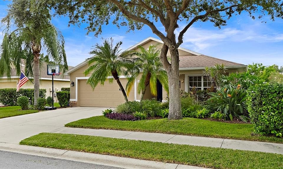 This nicely updated home located in Waterford is situated on a large lot and boasts an extended lanai that was recently rescreened. Great curb appeal with a covered front porch and lush tropical landscaping. Upon entering this home you will appreciate the abundance of natural light and the vaulted ceilings. Recently painted interior and exterior professionally painted 2016. Ceramic tile flooring and laminate flooring in bedrooms and living room. Kitchen upgrades include granite countertops, refurbished cabinets with crown molding, subway tile backsplash, pendant lighting, quality appliances and a breakfast nook. Both bathrooms have been nicely improved and feature granite countertops, updated fixtures and lighting. Fully fenced backyard installed in this year. Newer A/C system 2017. Newer Hot Water Heater 2016. This home truly reflects pride of ownership and is a must see! Enjoy the community pool alongside the 64 Acre Lake. LOW HOA Fees and NO CDD Fees. Convenient location easy access to Interstate 75, shopping, restaurants, golf courses and so much more. Make an appointment today!