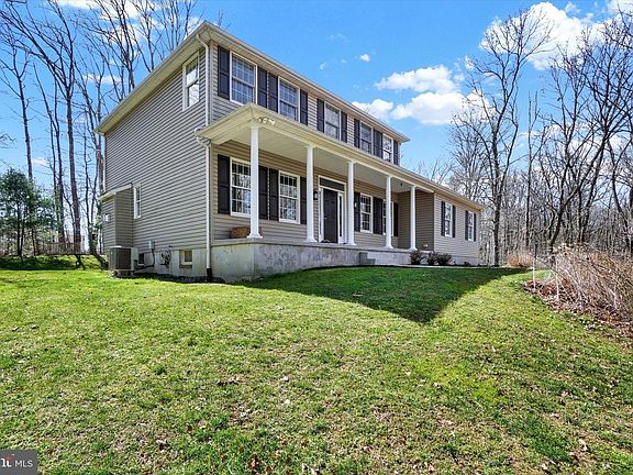 This 4 BR / 4 Bath colonial sits on 6+ acres with great privacy. Open floor plan with eat-in kitchen that flows into the FR with hardwood throughout and a gas fireplace. Front of the home has a formal LR and office both with HW floors. Second floor has 4 nice size bedrooms with a primary suite with shower and soaking tub. Large rear deck and covered front porch are great for enjoying the privacy and wildlife. Lower level is finished with full bath and office that was used as a guest bedroom since the basement has the walkout stairway. Lower level also has a den area great for a game room or rec room. A must see home!!