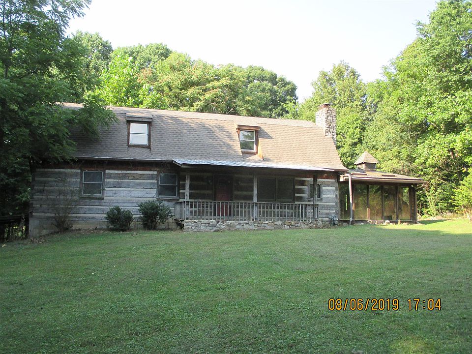 Spacious Log Home on 10 Acres w/Lots of Privacy. Home is in need of updating & exterior repairs. 2 or 3 Bedrooms on the Main Level (one is small listed as office) 2 large rooms and full bath on upper level. Lots of added storage area. Full basement also has workshop area & 1 car garage. 25 X 15 Sunroom