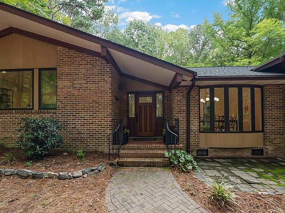 Show-stopper home! Custom built arts and crafts inspired home sitting on a secluded, wooded lot with 2.69 acres of privacy and nature! Enjoy all of nature through the homes oversized picture windows with upper level transoms. Detailed craftsmanship, thoughtful angles, high ceilings, natural materials and lovely hardwood floors. Enjoy the large deck off of the family room perfectly situated next to the gourmet kitchen with a sub zero fridge. Plus, washer and dryer convey. The large study can also work as a 4th bedroom! Roof 2021, Water Heater 2019, HVAC 9/2023 and 2/2012, Whole house Kinetico water system, and iWave Whole House Air Purifier. Located 15-20 miles to RTP, Duke, and DT.Convenient to Briar Creek Shopping, I-540 & Falls Lake Rec Area. No HOA. The backyard is a perfect secret garden!