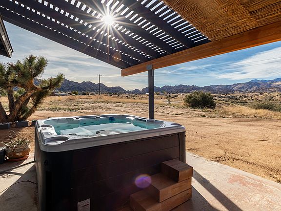 A Furnished, well-appointed rental. Welcome to Chasing the Moon, a gothic ranch designed for sacred indoor moments + expansive outdoor living. Newly renovated, the property sits on the sunset corner of the Pioneertown mesa. That means you can walk to Pappy & Harriet's or to miles of Preserve Trails in less than 5 minutes, but you also have unobstructed, private sunset views. Enjoy 500+ square feet of outdoor living space with a 7-person hot tub and stylish Teak furniture. Or, retreat to the well-appointed interior... The house sits on 2.5 acres on a private, dead-end Pioneertown street. There are 2 bedrooms on each end of the house and plenty of indoor and outdoor space for you to enjoy. The 500 square foot patio has a visionary design in the form of a wing awning that was architected to provide sun coverage with a cool breeze while still being able to enjoy the expansive, unobstructed views to the Preserve to the West and the Sawtooths to the South. From the hot tub you can stargaze while having incredible views and privacy.You are also a few steps away fromthe step-down,in-ground gas fireplace with a mandala-esque design. It should allow you to enjoy the outdoors even on brisk desert nights. Inside you will find a collection of art and antiques the stylist/artist owners have custom curated to create a unique Gothic Cowboy ambiance. Local decor has enough macrame, and we want to celebrate the darker aspects of the Desert. There is plenty of parking on site. We are right off one of the roads that make up the core grid of Pioneertown. The roads are rustic and made of packed dirt. You only need 2 wheel drive to get to the property. The roads are fantastic for walking or biking on. Don't miss the chance to chase the moon when it is bright and full. There are some great backstreets walks to get to Pappy's, Red Dog, or Pioneer Bowl. Rustic quiet neighborhood with big private lots and lots of character to take in. Walking distance down quaint dirt roads to downtown Pioneertown.Note that because Pioneertown is seeing tremendous interest there are new developments and construction happening on nearly every part of town. Lots of parking. Bike or walk to all Pioneertown attractions. Drive down the rustic roads if that is your vibe. No 4x4 are needed to get to our property as the roads are all flat and packed dirt. The desert is not friendly to bare feet. Please wear shoes. 'Nuff said. Cell and data service is spotty in Pioneertown, make sure that you download the guide we will message you or you may need to go 5 miles back to Yucca Valley for "full bars". No parties no smoking please. We said please. Twice. Renter responsible for Electric, Water and Internet. Landlord pays garbage.