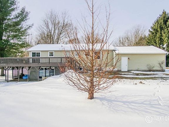 Bi Level home sitting om 10 acres of land. Fully functional pole barn perfect for starage,and work area. 2 bedrooms 1.5 bath on the main level. Large deck that spands across the whole back of the home. Finished walkout basement with wood stove that heats the home. Two more possible rooms in basement Propane as well. Seller uses wood primarly to heat home. Home is less than two miles away from Michigans Adventure. Lot is 330 wide and 1320 deep. Contact me today for a showing!