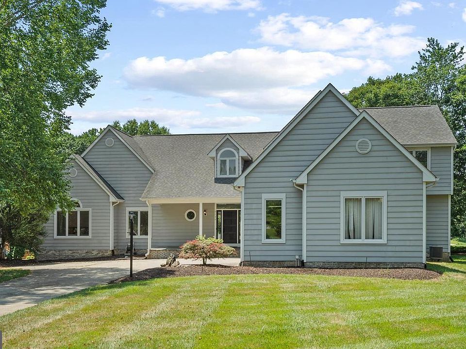 Nestled on the picturesque 2nd fairway of a pristine golf course, this stunning 4-bedroom, 3.5-bath home offers the ultimate in luxury living with breathtaking pond views. Designed for those who love to entertain, this residence boasts expansive entertaining spaces, soaring ceilings, and an abundance of natural light streaming through numerous windows and skylights. The main level features gleaming hardwood floors that flow seamlessly throughout, enhancing the open and airy feel of the home. The spacious living areas provide the perfect backdrop for gatherings, while the kitchen with an abundance of space will inspire your culinary creations and be perfect for entertaining. The first-floor primary suite is a private oasis, complete with an adjoining office, an enormous walk in closet, ensuite bath with dual sinks and a separate shower and jetted tub. Each of the generously sized bedrooms offers comfort and tranquility. Recent updates include new carpet and fresh paint throughout, ensuring a modern and inviting atmosphere. The huge walkout basement is a haven for entertainment enthusiasts, featuring a state-of-the-art home theater, a bar that seats at least 10 that has a built-in commercial keg system with taps, and luxury vinyl plank floors. The walkout design allows easy access to the beautiful outdoor spaces and scenic views. Additional highlights include a 3-car garage, a new roof installed in 2018, a tankless hot water heater, dual HVAC zones for optimal climate control, and a prime location at the end of a cul-de-sac. This exceptional home combines elegance, functionality, and convenience, creating a sanctuary you'll be proud to call your own. Don't miss the opportunity to experience this extraordinary property – schedule your private tour today!