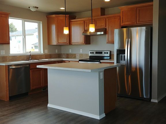 Come home to this brand new single level built by HiLine Homes with an amazing view of the Cascades! Highlights include open great room, vinyl plank wood-look flooring, and kitchen with island and new stainless steel appliances. Washer & dryer are also included. Stay comfortable year-round with the forced air gas furnace and central air conditioning. Enjoy sipping coffee or lemonade while sitting on the covered back patio that has an expansive view. Conveniently located near shopping and restaurants in the Huntington Meadows subdivision with all City utilities (including natural gas), paved streets and sidewalks. No landscaping completed, so Buyers may add their own personal touches. Seller is related to Listing Agent.