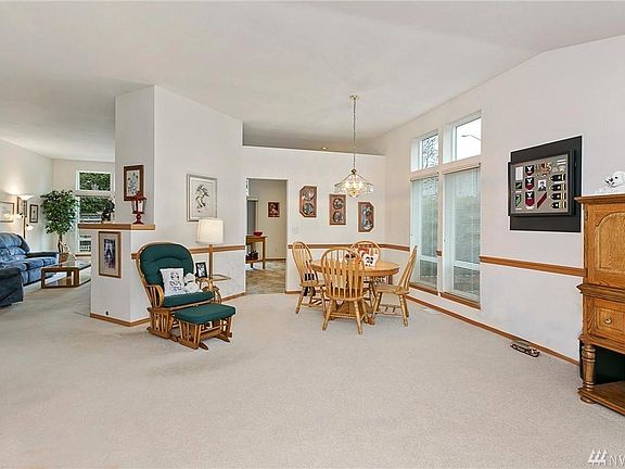 Great Silver Firs Rambler on a Cul-de-sac and Corner Lot. Perfect open floor plan w/3 bedrms and 2 baths, dining and living rm w/10 ft ceilings. Kit w/breakfast nook and lots of counter space. Family rm w/gas frplc. Master has crown molding, double door entry, walk-in closet, 5 piece bath w/jetted tub and skylight. AC and 2 yr old high efficacy furnace. Upgraded windows. Partially fenced private yard w/deck, patio and garden shed. Wonderful planned community w/tennis courts, parks and trails. Great schools.