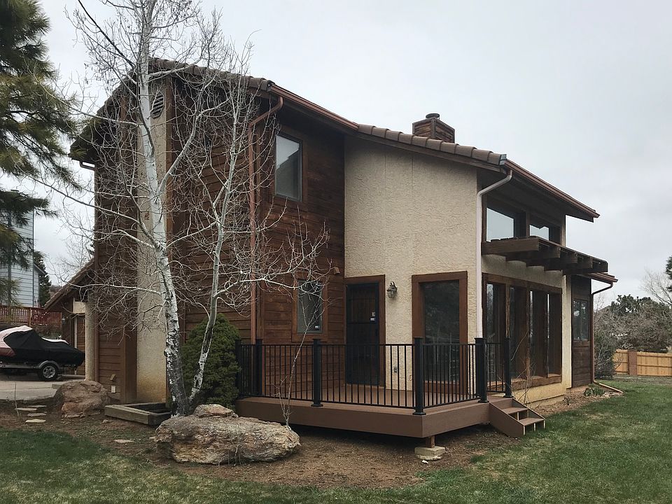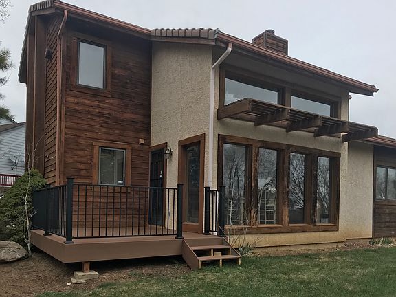 This home is in Mountain Shadows at the end of a cul-de-sac and sits on one of the larger lots in the neighborhood at 16,140 square feet with an attached 400 square foot two car garage. The total finished living space is 2,176 square feet with 3 bedrooms and 3.25 bathrooms. This is a two story home but has true main level living with kitchen, laundry room, living room, powder room, sunroom/dining room, master bedroom, master bathroom on the main level. The upper level has two bedrooms and a full bath along with a loft area. The remodeled lower level has a nice sized family room with raised ceilings, newer carpet with upgraded pad, newly installed Pella windows, and a remodeled full bathroom. The kitchen is open to the living room and is equipped with all stainless steel appliances: Frigidaire side by side refrigerator/freezer, Frigidaire dishwasher, LG electric cook top stove/oven, LG over the stove microwave. The pantry/laundry room is located just off the kitchen. The living room has 17 foot vaulted ceiling and is open to the Sunroom which has a wall of south facing windows for a bright open concept. The living room has a two-sided fireplace which is shared with the master bedroom. The master bedroom has a ceiling fan and master bathroom with double vanity, linen closet, oversized shower with double shower head, and walk-in closet. All three levels are equipped with quiet, efficient, newer baseboard heaters and every room has an upgraded digital thermostat. You have passive solar heating with the south facing wall of windows in the sunroom and brick flooring that retains the heat. There is an attic fan, recirculating fan, and each bedroom has a ceiling fan. The deck was replaced with composite decking and rod iron railing in 2020. The privacy fence at the back of the property was replaced in 2020 and upgraded with an access gate that leads to Flying W Ranch Road, Mountain Shadows Park, and Chipeta Elementary School. The property has boulders, several species of pine trees, aspens, and scrub oaks. The front yard and partial backyard is equipped with a 4 zone automatic sprinkler system. The electrical panel was upgraded to 200 amp and outfitted for a hot tub. The 6 person Master Spa, Twilight Series (TS 8.2) hot tub with new cover is negotiable. For additional questions reach out to the homeowner: Ashley (719) 505-6682. I am not interested in listing this home with a realtor.