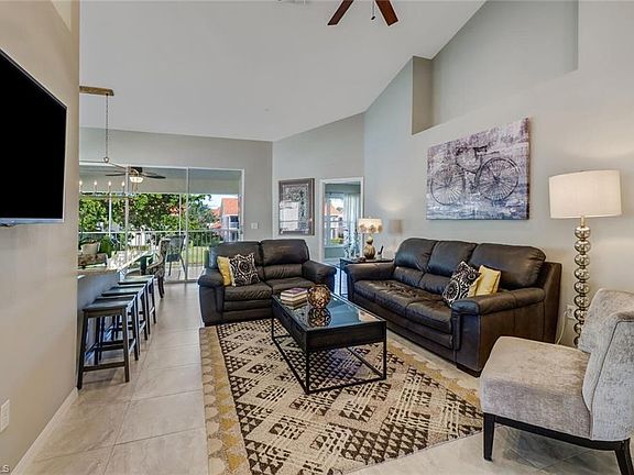 Wowser - seller revamped & redesigned almost every inch of this beautiful 2nd floor coach home. Private courtyard entrance. Spacious living area with vaulted ceilings & open floor plan. 3 bedrooms, 2 baths, 2 lanai's. 1 car garage. Previous floor tile was removed, replaced & extended out to both lanai's. Recessed lighting added throughout. Ceiling fans, light fixtures replaced. New plumbing in kitchen & master bath. Kitchen extended adding more cabinetry & counter space. Breakfast bar reconfigured. New cabinets, quartz counter tops, subway tile backsplash, s/s steel appliances. Master bath walk-in shower with amazing tile & a glass partition; double sink vanity, quartz counter top, decorative mirrors & lighting. Secondary bedroom has raised panel wainscoting. New vanity in the guest bathroom. All of this & more in the most serene lake side setting. Primo North Naples location & within walking distance to Seeds to Table and Publix; 10 minute drive to the beach, nightlife & shopping, at Mercato, Whole Foods & Trader Joe's. Easy on/off access at 75 & 20 minutes from SWFL International Airport. Water, cable, interior/exterior pest control included in HOA fees.