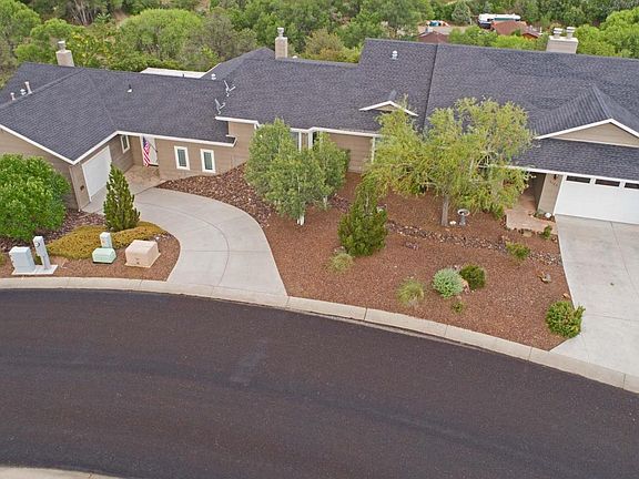 Fantastic single level Custom Home located in the desirable Creekside of Prescott area with VIEWS. Hidden away, yet close to everything! This home is perfect for extended families! Main house offers open great room with patio access, kitchen with island & new appliances,dining area, large master suite w/fireplace, private hall leads to 2 bedrooms,an office(or 4th bed) & full bath. Another hall with extra pantry leads to family room, laundry rm & access to the attached guest quarters that offers a kitchen,laundry rm,1/2 bath,great room w/fireplace & master w/fireplace and full ADA compliant bathroom. Property has 2 A/C, 2 recirc Water heaters,Circular drive & 2 separate attached garages. Mature landscaping, fruit trees, drip system, multiple patios for entertaining w/ built in bbq,bar&views