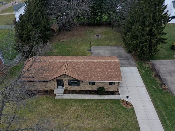 Call or Text listing agent Darcy Friel at 330.324.2264 for a private showing. Fantastic brick ranch with open floor plan features plenty of parking, large patio, partially fenced yard mature trees, storage shed, and a fire pit! You will love the Kraftmaid kitchen with double oven, Corian countertops, center island with breakfast bar, and Pella French doors that lead outside. The kitchen is open to the living room and flooded with light from the bayed window! Remodeled bath with tile floors and double sinks. All bedrooms have double closets and master has a ceiling fan. The lower level has a staircase from the home and garage. There are two large finished areas and bright vented glass block windows. Updated 200 amp electric, plumbing, furnace, and AC new in 2012. Awesome home!