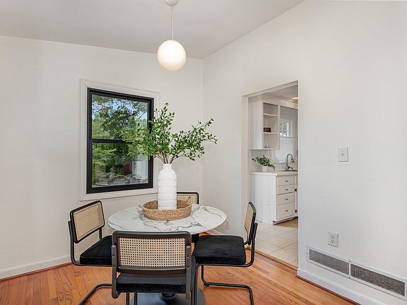 Welcome to this rare, mid-century modern gem nestled inside the Beltline on a spacious .31-acre lot. This versatile home can be a 5-bedroom family residence or a 3-bedroom, 1-bathroom upstairs with a 2-bedroom, 1-bathroom in-law suite downstairs, featuring a separate entrance. The large driveway offers ample parking for four cars. The home boasts beautiful hardwoods and tile upstairs, and durable tile floors downstairs. Enjoy the full galley kitchen upstairs and a convenient kitchenette downstairs, perfect for versatile living and entertaining. Both floors feature renovated full bathrooms. Recent updates enhance the home's modern appeal, including a newer roof (2023) and a drainage system leading to a charming rain garden in the backyard. The completely fenced yard offers privacy and security. The large backyard is a true oasis, featuring a 8x10 storage shed and a spacious deck off the upper kitchen, ideal for outdoor gatherings. The garden is adorned with a variety of fruit trees and bushes, including banana, fig, pomegranate, blueberry, raspberry, persimmon, and plum, creating a delightful and productive space. Don't miss out on this rare gem combining mid-century charm with modern updates, conveniently located in the heart of Raleigh.