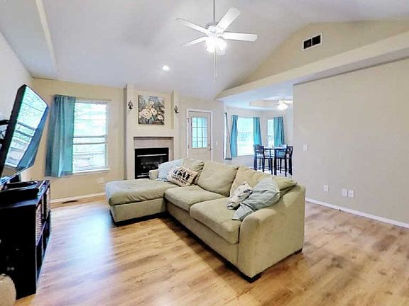 Please see virtual tour! Enter into the large open living area with fresh paint & vaulted ceilings, and a cozy fireplace, and walk on through to your dining area and a great size kitchen with ample storage and updated paint/hardware. Hall bath features a jetted tub, and all bedrooms have new carpet. Privacy fenced backyard with a deck perfect for entertaining!