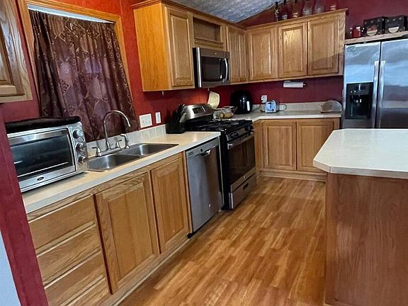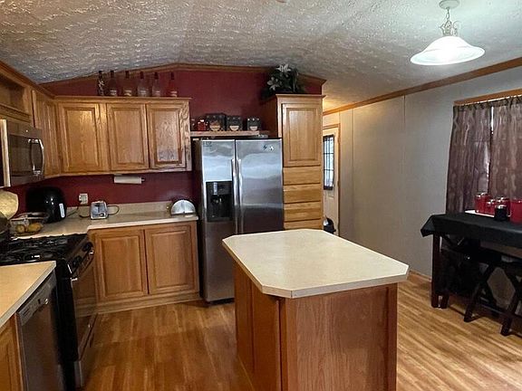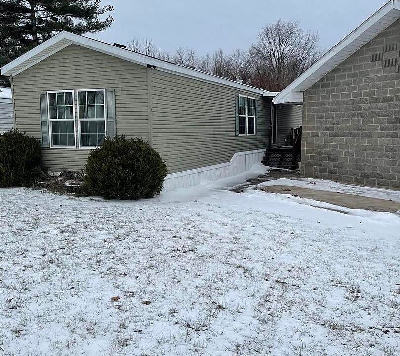 Welcome home! This 2 bed, 1 bath gem has all the extras. Enjoy the front covered porch on a summer evening. Custom shelving inside, newer appliances, a tub with jets, upgraded double pane windows, drywall throughout, and a water softener. Also included is a 1 car detached garage. Lot rent is $250 monthly. Sale is contingent upon seller finding suitable housing.