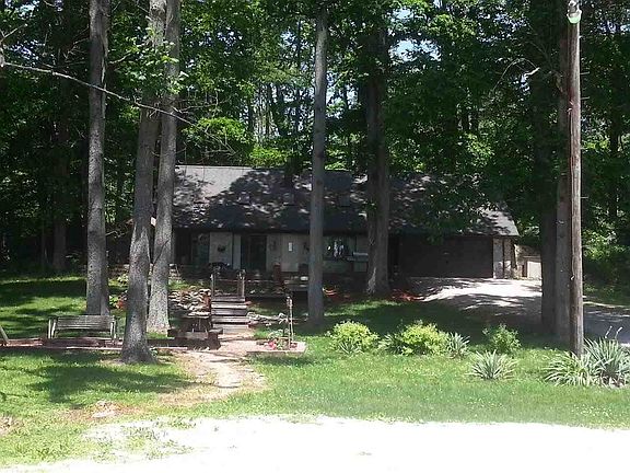Charming country setting with partial Berm style home on nearly 10 acres of woods makes this home perfect for any family. Four bedroom, 2 bathroom and fully applianced. All electric, well water and septic. Both detached and attached garages. Lovely landscaped terraces and water features down rolling front yard for outdoor enjoyment. Homeowner pays only one utility for electricity.