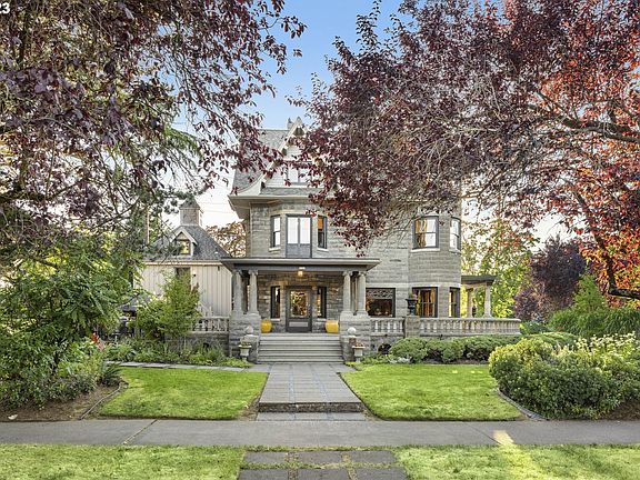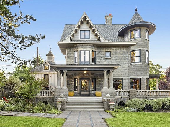 Location, location, location and one-of-a-kind opportunity! Own your own piece of Portland history with easy access to great food and culture on nearby Alberta, Mississippi, and Williams. Minutes to downtown and easy freeway access. This house was made for families, friends and entertaining. Flexible layout incorporates two spaces that could serve as private living areas, perfect for MIL, teens, or out of town visitors. The outside entertaining space and best porch in Portland are made for hosting large gatherings or intimate dinners. Excellent location and layout for a home office or business that includes hosting clients. Check out this incredible piece of Portland history and bring your dreams to its next chapter. This historic Jennie Bramhall home was designed by famous Portland architect, Alfred Faber with a highly unusual combination of Queen Anne styling with cast concrete block construction. Featured on HGTV, highlighted in Preservation Magazine & NW Renovation, as well as movie productions, this home includes Povey stained glass, Richardson fireplace, three stories of turret rooms, an expansive wrap-around porch, and oak flooring with mahogany inlay. The beautifully landscaped yard incorporates inlaid stone patios and a mosaic fountain. On a double-lot, the extra benefits include a two-car parking pad, two car garage, and bonus studio above the garage with its own bathroom, laundry, & kitchenette. [Home Energy Score = 1. HES Report at https://rpt.greenbuildingregistry.com/hes/OR10194776]