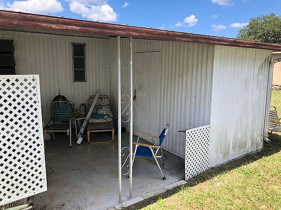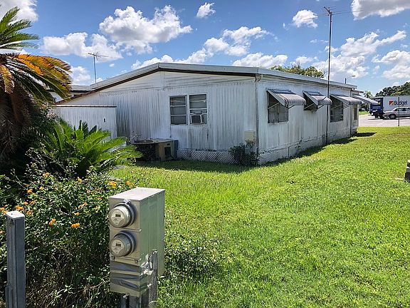 You own the land! No lot rent! Double wide with 2/2, living and dining area. Front addition for a den. Parking in driveway and carport. Large lot with front yard, laundry/storage under carport and storage building in rear. The community activity building is across the street. This property was inherited and priced to sell for the grand kids. Priced due to needed repairs. CHA unit needs replacement or continue with window units. Several soft spots in the floors, area in the kitchen and in each bathroom. Upside potential with sweat equity. This is a 55+ community with low fees.