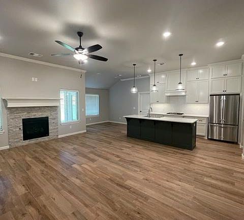 (LOCATION IS OFF SORHGUM MILL & DOUGLAS IN CHERRY HILL ADDITION. EDMOND SCHOOLS) Make this BRAND NEW house in East Edmond your new home! Home Location is in Cherry Hill addition off Midwest & Douglas in Edmond schools (map & school info are on Zillow aren't correct) 4 Bd, 2 BA 3 car garage Storm shelter Attic space Custom upgrades throughout Large fenced in back yard with with fire place Large laundry room Drop zone Tons of storage Living area holds a 10-ft ceiling, a ceiling fan, a fireplace w/ stacked stone detail, & a gorgeous barn door that secludes two bedrooms & one full bath. Kitchen beams excellence w/ cabinets to the ceiling, a large island with quartz countertops, tile backsplash, pendant lighting, & built-in stainless steel appliances. The owners suite is tucked away & has a sloped ceiling detail plus a ceiling fan. The primary bath is attached & holds a walk-in shower, a whirlpool tub, dual vanities, & a walk-in closet w/ access to the utility room. Relax on this extended back patio w/ the outdoor fireplace & tv hookups. Extra amenities include an air filtration system, a Rinnai tankless water heater for endless hot water, & R44 insulation. Renter is responsible for all utilities. No smoking No cats Landscape maint is optional for $50/mo. Tenant can guarantee they would maintain yard or property owner will provide maintenance and rent will increase to $2000/mo.