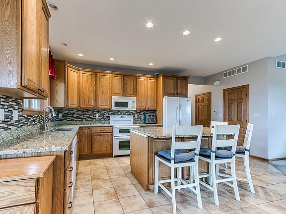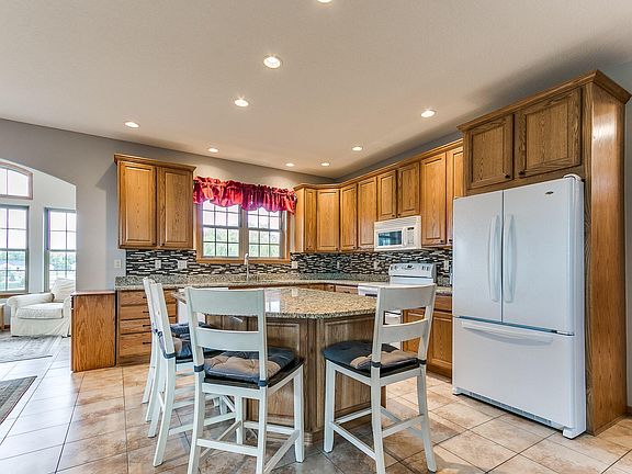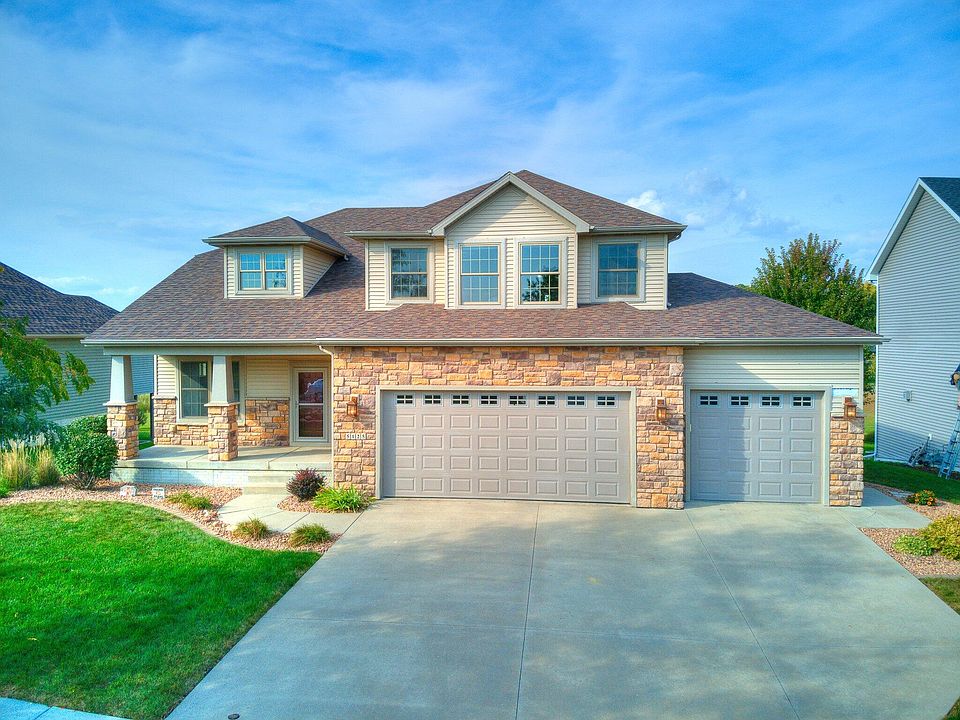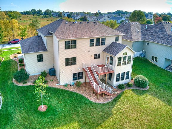 This fantastic 6-bedroom, 4-bathroom, custom-built, walk-out lower-level home sits in the beautiful Sunset Ridge, West Ames & backs up to a great green space. The interior is amazing, providing over 4,000 tastefully finished sq ft & the distance between backyard neighbors is hard to beat. The main level has an extra spacious living room with vaulted ceilings, laundry room with a sink, large mudroom, a large kitchen with a huge island & a fabulous sunroom, not to mention a bedroom on the main level which also makes a great office. The roof was new in 2023 & the entire home will be re-sided prior to closing. The 3+ garage is oversized & the deck is all weather-proof. The lower level features a large family room with a corner fireplace, rec room, 6th bedroom, 3/4 bath, a wet bar, plus storage. Additional updates include a new water heater '21, quartz bathroom countertops '22, current owners also added tile kitchen backsplash, upgraded the flooring, newer dishwasher, & more. The primary bedroom is large & there is a primary bathroom connected to it with a tile walk-in shower, jetted tub & double sink vanity & wait until you see the enormous bonus closet in the upstairs hallway.