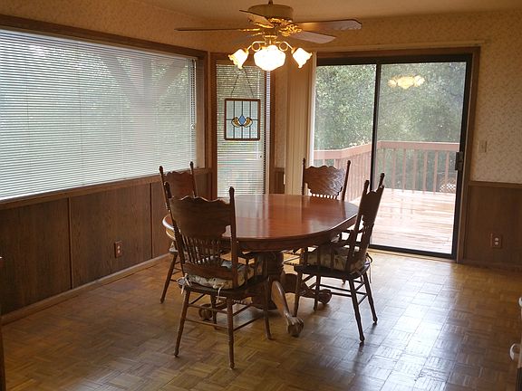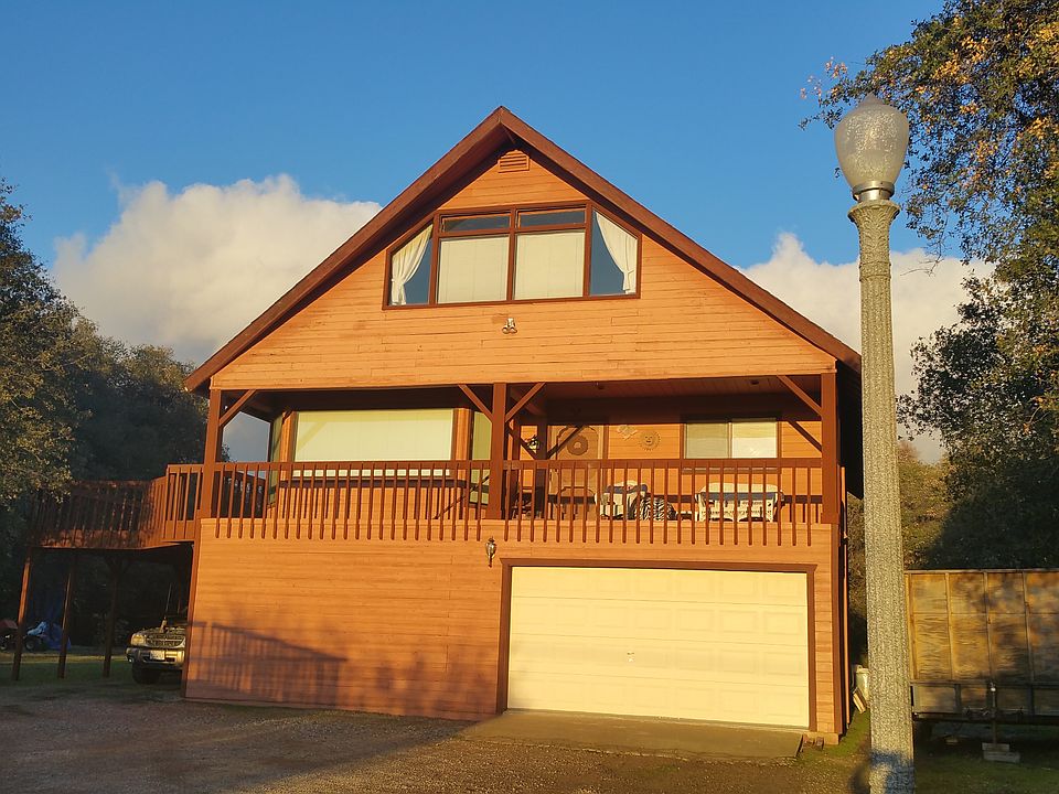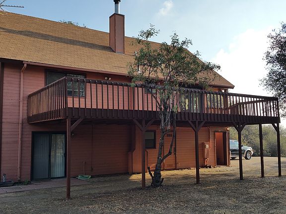 Chateau in the Foothills! This 3 level house at the 3400' elevation,above the fog,with an occasional dusting of snow offers spectacular views from the covered porch of valley lights at night and stunning sunsets every evening. All 2 x 6 construction.The first level has a private entry and lockable to the remaining floors and could be rented out as a studio apartment.It has a one bedroom and bath with double sinks, tub/shower, a cabinet for hotplate, refrig, or microwave with storage room. The second level has a covered porch and a 16x40 side deck and has 2 bdrms 1 bath.The kitchen is soild black walnut, with butcher block tops.Dining and kitchen have oak parquet floors. The laundry room has several oak storage units.The 3rd level game room has a wood burning fireplace with large windows to enjoy the amazing views.Returning to the ground level,is a garage/shop insulated and has plenty of storage. A Koi pond is in place in the front of the home but needs some work. A must see!