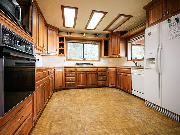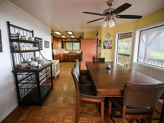 This is a Unique & Private 3 story home with 4 bedrms 2 baths sitting on a flat 3 tiered 4.4 acres of land with a meadow. The first floor has a private entry, 2 bedrms and 1 bath with double sinks, tub/shower and lockable to remaining floors. It would make a great in laws quarters or rented out as a studio apartment. The second level has 2 bedrms and 1 bath, covered front porch and a 16x40 new side deck off dining room to enjoy BBQ's, relaxing and stargazing. The kitchen is solid black walnut w/ butcher block-tops. Large utility room with lots of oak storage cabinets. The 3rd level is a large family /game room with a wood burning fire place and large windows. Home also features large insulated garage / shop with plenty of storage. This home is 2,250 Sq. Ft., tax records show 1,968 sq. ft. Permits unknown.