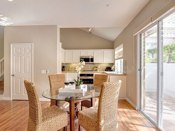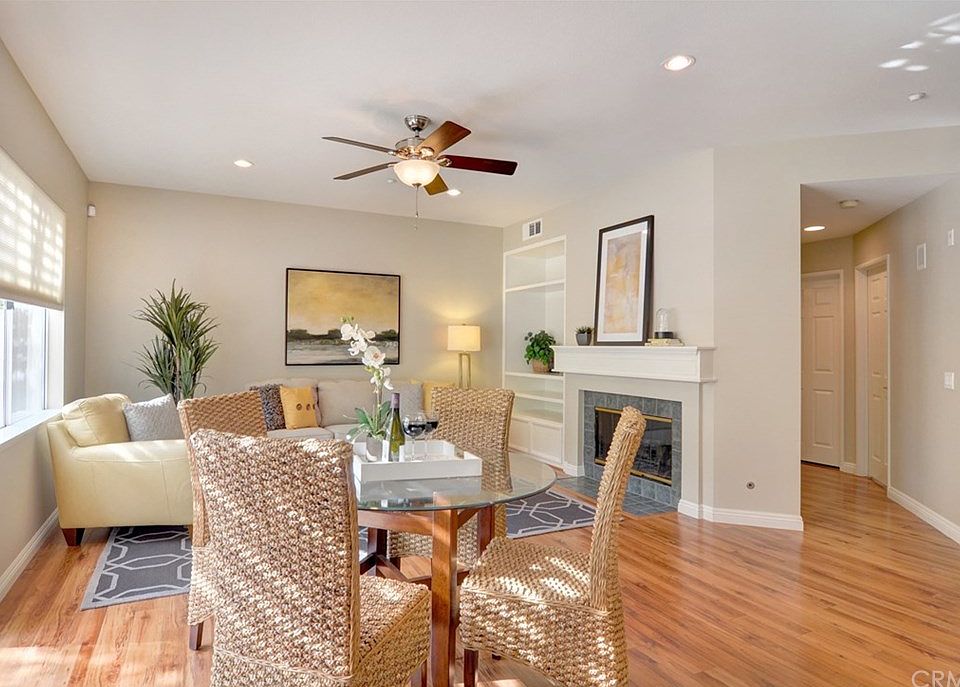 Perched atop Serrano Hills, this gorgeous home at the "Bluffs at Belmont" is a treasure! Newly painted throughout this 3-bedroom townhome, featuring a full bedroom and bath on main floor, is the home you've been seeking. As you walk in to your naturally illuminated living space, your greeted by warm wooden laminate floors throughout. In the airy kitchen, you'll find newly painted cabinets, all new stainless steel appliances, including a 5-burner gas range, and lots of counter space to prepare delicious meals. While you're there enjoy a refreshing drink of water from your reverse osmosis water filter and a view into your spacious patio outside. Entertain your favorite guests in the spacious living room with fireplace and stay cool with the newly installed ceiling fan. Large and spacious dual master suites with newly installed ceiling fans await you upstairs as a quiet retreat from your long day. The full sized-laundry room complete with new Samsung washer and dryer with risers and fully installed water softener make it easy to keep things clean and shiny. This home is completed by the large and convenient attached 2-car garage. Enjoy the wonderful HOA amenities of the association pool and spa, and trash which is also covered by the association. The excellent location and close proximity to freeways makes this the perfect place to call home.