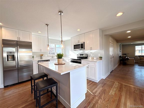 Beautifully updated 4 Bedroom 2 Bath Home in Arvada with New Paint Throughout, New Lighting Throughout, Beautiful Hardwood Flooring, New carpet, New Wood Cabinets with Quartz Slab Counter Tops and Stainless-Steel Appliances, Baths have New Designer Tile, New Double Pane Windows! New landscaping! Sprinkler system! New Concrete driveway! New paver patio! All this in a great neighborhood! This is a must-see!! Your future home is waiting!