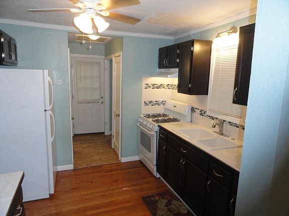 This is a great house for a single person or a couple. The house is small but very well appointed. The entire house was recently renovated and all areas planned for maximum use of the space. The house is in a very nice neighborhood with good access to I-35 and I -435. The house is in the northland very near Claycomo. This house was completely remodeled about 4 years ago with all new systems and equipment. The house has new plumbing, water heater, electrical service, furnace, central air and finishes throughout. Everything is high efficiency to help with energy bills. The house has a two car driveway for convenient off street parking. There is also a large storage unit built at the end of the driveway that takes the place of a garage for storing things you don t want to bring into the house. There is also a large patio across the entire front of the house. Once you enter the house, the living room is good size. There is a full wall of built in shelving to hold books, music, pictures, and anything else you may want. There is also a space for a wall mounted TV so that no additional furniture piece is needed to hold the TV. There is also a fold down table for use as a work or eating space. The house has hardwood floors throughout. These are beautiful oak floors in all spaces except the bathroom where the flooring is tile. There are two bedrooms in the house. Both are small but they are large enough to hold a queen and Full beds respectively. Also, every room has a ceiling fan for added cooling. The center of the house is the kitchen, It is equipped with a refrigerator, disposal, and gas stove. There is good counter space and plenty of cabinets for lots of storage. There is also a pantry/broom closet just off the kitchen for additional storage. The bathroom is well designed with a large 3 x 4 walk in shower. The bathroom vanity also has large drawers for extra storage and a beautiful vessel sink and tile counter. Just outside the bathroom is the laundry closet that can hold a stackable washer and dryer. The house has a back deck with a privacy fence around it. This deck is fully shaded in the summer and walks out onto the backyard that is fenced and perfect for a dog. The rent is $780/ month and $780 deposit. We do allow pets with prior approval and a $300 one time pet fee. House is available immediately. For more info or to see the house, call TED at 816-726-3839 Lease will be for 12 months. Tenant pays for all utilities and takes care of yard maintenance.