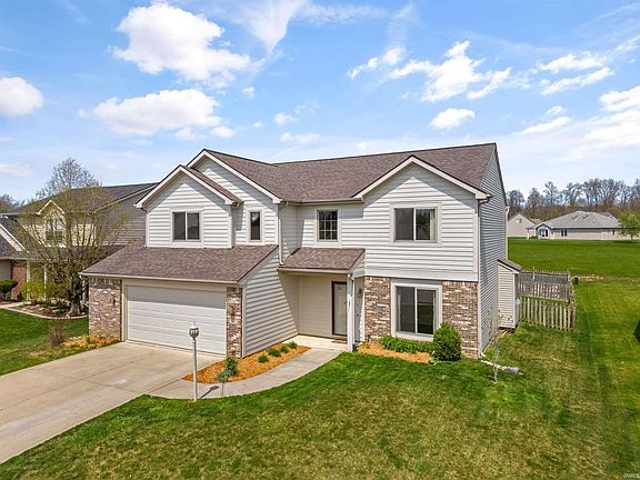 Nestled in the heart of Fort Wayne in Stone Canyon, this spacious 2,178sqft 4 BR / 2.5 BA is waiting for a new owner! The main level consists of a 2-story foyer entry, an open kitchen concept to the nook and living room with a brick gas fireplace. Also on the main level is a half bath, laundry room and den/formal dining room, however you choose to use it. Upstairs you will find 4 oversized bedrooms and 2 full bathrooms. The generous owner’s suite is 20x13 with a full bath and 7x16 walk in closet! All bedrooms have new carpet. This home has 6 panel doors, natural hardwood floor in the upstairs hallway and stairs, ceramic tile in all bathrooms, foyer and kitchen. The living room has been updated with plank flooring. From the nook, step out the sliding glass door to a patio and fenced in backyard overlooking a large common area. So much room for activities! The oversized garage has a 4’ extension for plenty of storage. With a convenient location close to Jefferson Point, Buckner’s Park, Restaurants and I69 this one will surely check off most of your boxes!