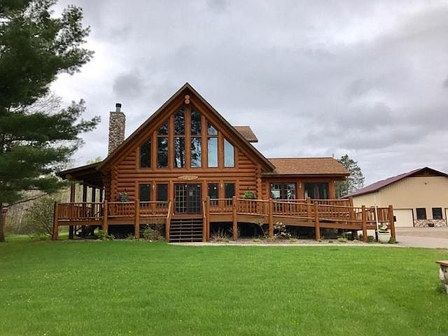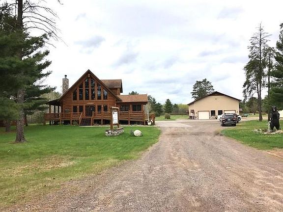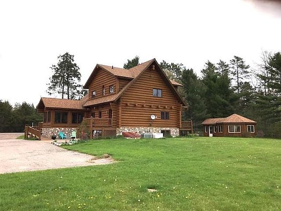 CUSTOM BUILT FULL LOG HOME! Spectacular 4 BR, 3 BA home w/open concept on 10+/- acres with 1/2 of the pond , located in the popular Boulder Junction, Manitowish Waters area. What makes this special is the location on Highway 51 giving you endless opportunities. This is a perfect entertaining home for large gatherings. Main floor has a large kitchen with hickory cabinets, pantry and island, dining/office and LR with vaulted ceilings & beautiful field stone wood burning fireplace, log staircase with twig spindled railing to the upper level master bedroom suite & balcony library. Main level BR & BA, main level laundry, 2nd floor Master suite with whirlpool tub, shower & walk-in closet, lower level rec room with free-standing gas stove, bath and 2 bedrooms. Free-standing gazebo building with hot tub, large pole bldg with showroom, workshop, upper storage room, upper exercise room with sauna. This property must be seen to really appreciate all the amenities it has to offer!