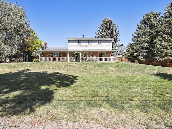 Classic Columbine Manor two story situated on a quiet 1/3 acre lot. Ready for your updates and sweat equity. Main floor features kitchen, powder bath, formal living and dining rooms and family room with cozy fireplace. 4 bedrooms upstairs including primary suite with private, ensuite bathroom. Finished basement with rec room, additional bedroom (non-conforming) and utility room with storage. 2-car attached garage. Covered back patio and huge, flat fenced backyard. Prime location with easy access to neighborhood parks, schools, shopping, C-470 and Chatfield State Park. Don't miss your opportunity to make this home your own!