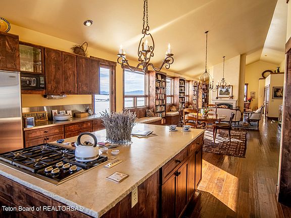 Elegance, privacy and stunning Teton views - this beautiful country home offers a refuge from the busy world. The esteemed owner architect has woven her native Montana with a French countryside flair into the home. Comfortable and warm, the lighting, wood burning fireplace and expansive yet cozy great room will draw you in. A dream kitchen for chefs or entertainers, you have the best - Wolf, Asko and Sub Zero appliances. Guests enjoy privacy in their own wing of the home or the apartment in the ''Carriage house''. The oversized garage and storage is ideal for skis, kayaks, fishing gear, and all of your toys.Sitting on 20 acres of gorgeous rolling farm land, this gem can be your jumping off point to explore all the tri-state (ID, WY and MT) area has to offer. Come feel the charm. 2021-07-28