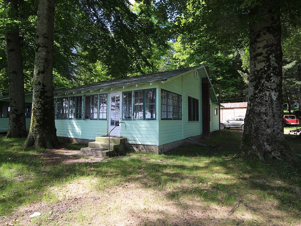 Beautiful building site. Some older cottages of the Shady Shores Resort need to be removed to comply with setbacks/zoning. One cottage could remain though it needs work and a 24 x 47' barn could stay. Sewer tap ready to go. Sandy swimming beach. 223 Acre lake is all-sport and located in popular resort community of Sister Lakes. Lot has good depth of 198' deep. Level site ideal for building. Must cross residential road from building area to shore area of lake. COTTAGE: Has 3 bedrooms, 1 Shower Bath, space heater, 1,008 SF, kitchen, & lakeside porch.