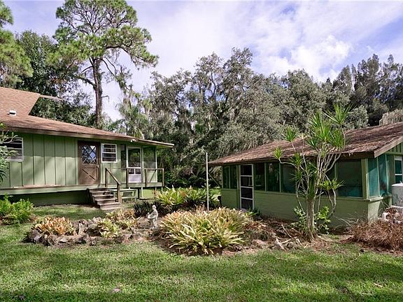 Your slice of Old Florida paradise on Braden River awaits. Drop a line and catch your dinner. Over one acre of established oaks and pines on the mainland, plus water and island piece that combine for three acres total per county tax ID. Notes on old appraisal (1968) indicate mainland lot is approximately 152x340. See County Property Appraiser map attached as a photo. Same owner for 50 years. Main house is 2 bedroom, 1 bath, with screen porches in both front and back. Building two is a garage/workshop with metal roof and electricity, measuring twenty eight by twenty two feet. Outside the workshop is a large area that was a hobby nursery. Needs cleanup and screening but the bones are there if you love gardening. Third building was a summer house, measures twenty eight by twenty, needs work but has had water and electric, and features a large brick outdoor BBQ. Come explore the possibilities. The site and grounds will capture your heart with exotic plantings and moss draped trees. Can you find the pilings from the old dock? South property line stake is visible at water's edge. Please respect this boundary.