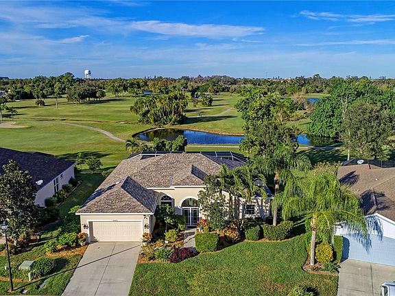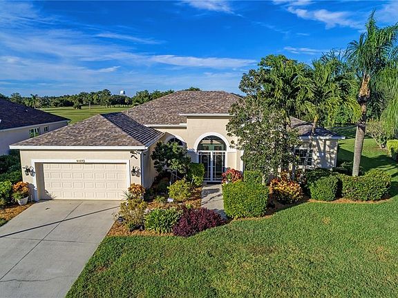 Your eyes will be immediately drawn to the golf course views as you walk into the pool area. From the foyer of this 4 bedroom 3 bathroom 2,567 sq ft Glenn Lakes Estates home you will love all the details. A rare find in this perfectly located community, you will be one of just a few homeowners who enjoy Florida living at its absolute best on the golf course. Wonderful curb appeal with Florida landscaping, and a screened entry to gorgeous glass French doors. The soaring ceilings provide plenty of natural light to the spacious formal living/dining room. The chef's dream kitchen includes rich 42" dark cherry cabinets, stainless steel appliances and Granite countertops. The breakfast sitting area looks out to the pool and water. The family room opens to the kitchen provides a great place to gather during family gatherings and has a gas fireplace. The Master bedroom suite includes a sitting area with sliding doors to the pool, two large walk-in closets, dual sinks, shower and separate jacuzzi tub. There 3 more bedrooms (one currently used as an office) and 2 more full bathrooms. Their list of upgrades include a heated and cooled salt water pool, impact windows with storm shutters, security system with cameras, whole home surge protection, and the exterior was just painted 6 months ago. The large covered area on the lanai is great as well as plenty of lounging space around the pool. Right across from IMG, a very short drive to our fabulous beaches and all the great things West Bradenton has to offer.