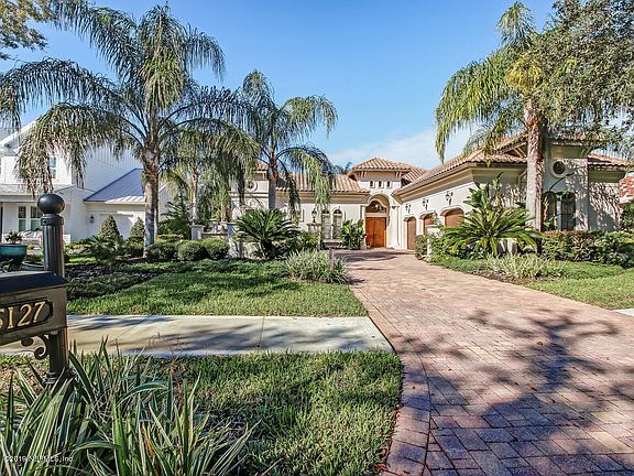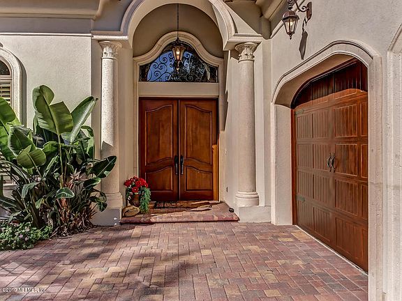 Enchanting Italian Courtyard Custom home constructed by Elwood Collier in the exclusive Pablo Creek Reserve, Jacksonville's premier gated community. Stone flooring imported from Italy, authentic Venetian plaster walls and custom ceiling designs unique to each room offer a regal feel that would make Italy's rich and famous feel at home. Huge wooden doors open to spacious courtyard featuring a summer kitchen and heated salt water pool/spa lit by two gas ''coal pits.'' Courtyard connects to the guest house offering its own kitchen and master suite. All three bedrooms on the property offer luxurious ensuites. Enjoy a drink from the wine cellar while gazing over the lake at sunsets on the back patio of this home that exclaims, ''Lusso!''-Luxury in Italian.