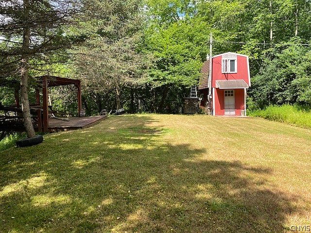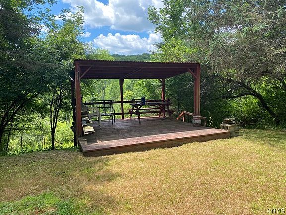 This cabin sits on 2.6 secluded acres in Friendship NY, Allegany County. Are you looking for an inexpensive, weekend getaway? Look no further. This nice, small cabin is surrounded by a mix of hardwoods and softwoods for great seclusion. There is a mowed walking trail, and amazing valley views as well. The property includes a covered platform/deck to enjoy the views! The cabin has a loft which would be perfect for a bedroom. It also has electric and a cased water well. The property is being sold as-is.