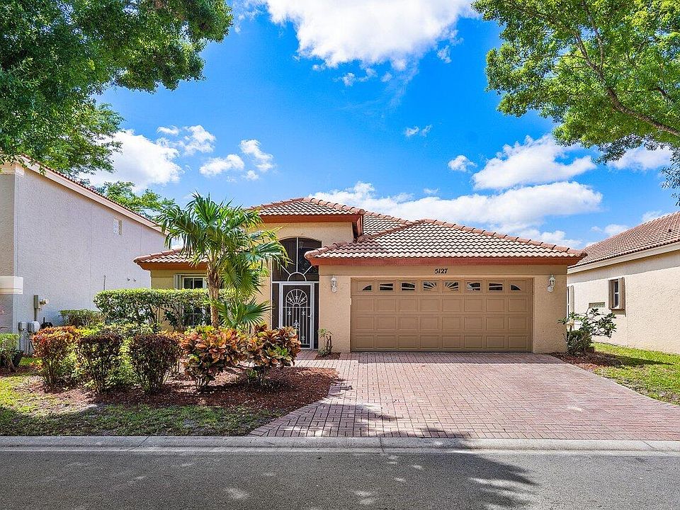 Welcome to the gated community of Woodbine! This single-family home has been aggressively priced for a quick sale! Make this CBS 3 bedrooms, 2 baths, 2 car garage with room for pool your own, nestled on a lake for the promise of tranquility and comfort. As you step inside this home, you'll be greeted with spacious floor plan that effortlessly blends functionality with style featuring kitchen with granite countertops, white cabinets, and a convenient pantry for all your culinary essentials. Convenience is key in this home, with a walk-in laundry closet thoughtfully positioned between the bedrooms, Retreat to the expansive master suite, where you will discover an oversized walk-in closet to accommodate even the most extensive wardrobe, while the master bathroom offers a blissful escape... with its large walk-in shower and dual sinks. Stepping outside you'll enjoy the covered screened patio overlooking lake. Woodbine offers an array of amenities to enhance your lifestyle, including a community clubhouse with a fitness center and a gorgeous pool where you can lounge and soak up the Florida sunshine. Conveniently located next to the VA hospital and short distance from major highways plus Palm Beach International Airport. Don't miss your chance to make this idyllic retreat your new home sweet home!