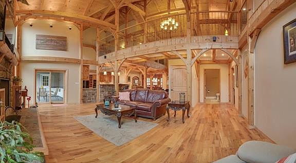 This quality crafted 1.5 sty home showcasing Post & Beam construction is built w/ the highest standards in materials & design. You will be amazed at the beautiful craftsmanship evident in every room. The 3.9 acre lot offers beautiful views from every vantage point. Step inside the solid knotty alder door and relish in the awe of the quality and visual elegance this home has to offer. You'll be drawn in by the warm hardwoods, stunning chandeliers, catwalk, loft, & floor-to-ceiling stone fireplace. The impressive gourmet kitchen features breakfast bar, custom cabinets, granite tops, travertine floors & upscale appliances. Finish up business in the front office, and then slip out the back French doors to the covered patio & peaceful retreat to relax. Fabulous master suite with luxury bath, private slate tiled patio, and his & her walk in closets. The upper level is equally impressive, w/ catwalk, 3 spacious bedrms one w/ a loft area, add'l two full baths, & large bonus room/rec area.