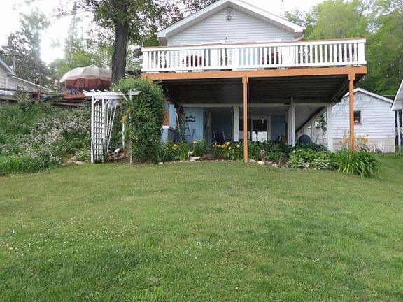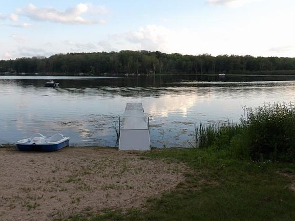 This beautiful waterfront property on the All Sports Vaughn Lake has to be seen to be appreciated. The room sizes are as follows: Kitchen 12x27, Bed 1(9x10), bed2(9x11), Bed 3(9x11), Bed 4(11x24), living room (30x16), Bath UP (8x8), Bath down (8x8 inc.2x5 furnace area), Laundry room (8x16). Upgrades: Electric(2009) Furnace(2020) Roof(2006) New windows & doorwalls (2020) Blown in insulation(2021). The homeowners pride shows throughout the interior and exterior. Very well maintained and the decor is definitely eye-catching. Whether you are fishing, boating, swimming or just on a pontoon ride you will enjoy the relaxation. FAMILY FUN AND LAUGHTER, should hang over this entrance.
