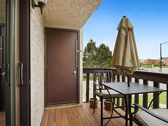 Easy, low-maintenance living awaits you in this conveniently located in Westminster's Spanish Oaks Condominiums. This end-unit condo, which showcases a contemporary, open-concept floor plan accentuated with newer hardwood flooring and a vaulted ceiling with large windows that fill the space with natural light, creating an atmosphere that's ideal for entertaining. Enjoy your morning coffee or watch the evening sunsets from the private patio off the living room. The open floor plan seamlessly flows into the contemporary kitchen that features sleek granite countertops, stainless steel appliances, an abundance of cabinetry and storage, and large eat-in space. Two spacious bedrooms offer comfort and privacy, and the master retreat has a large en-suite bath that's been completely updated and has plenty of closet space. Convenient detached 1-car garage and wonderful amenities including a community pool and playground. Quick access to Sheridan Blvd and Hwy 36 to get you downtown or the mountain quickly, and shops and restaurants are easily available.