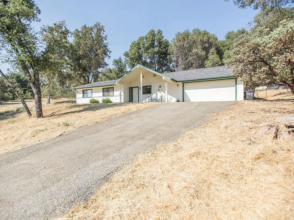 This comfortable 3 bedroom, 2 bath is situated nicely on a park-like almost one acre parcel. Located between Oakhurst and Bass Lake this home is conveniently close to town. The vaulted ceilings and cozy fire place are welcoming in the open floor plan. The many features include newer interior paint and flooring, recently updated kitchen and baths, newly installed air-conditioning, two car garage and much more! As an extra bonus this property has extra-large hallways and Handicap amenities!